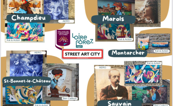 Une quinzaine d’oeuvres Street Art sont visibles dans le Forez ce qui constitue un véritable parcours en visitant les communes labellisées « Villages de caractère » qui ont participé à ce projet : Sauvain, Marols, Montarcher, St Bonnet-le-chateau et Champdieu. Après Ben Caillous en 2023, Kat&Action en 2024, c’est l’artiste de street […]