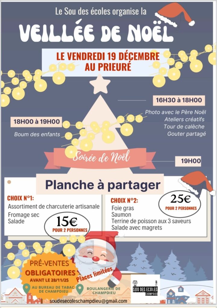 - 19/12/2025 : Veillée de Noel du Sou des écoles de Champdieu,