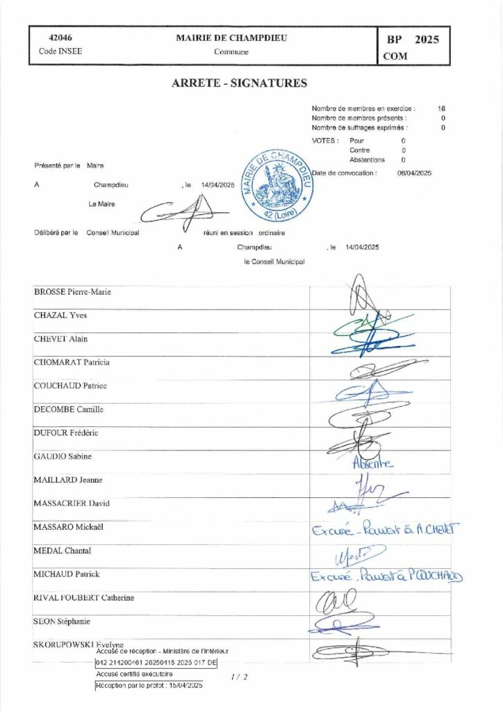 99_DE-ANNEXE DELIB 2025 017 CM du 14 04 2025 Page signature Budget général 2025 SPublié 22 octobre 2025 dans Comptes Rendus de Conseils (Champdieu & LFA). ← Précédent https://www.champdieu.eu/wp-content/uploads/2016/10/COMPTE-RENDU.png https://www.champdieu.eu/wp-content/uploads/2025/10/image001-2.jpg https://www.champdieu.eu/wp-content/uploads/2025/10/image001-3.jpg