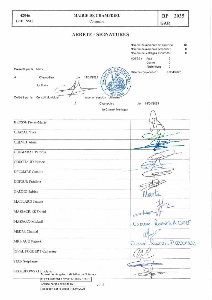 99_DE-ANNEXE DELIB 2025 018 CM du 14 04 2025 Page signatures Budget annexe 2025 SPublié 22 octobre 2025 dans Comptes Rendus de Conseils (Champdieu & LFA). ← Précédent https://www.champdieu.eu/wp-content/uploads/2016/10/COMPTE-RENDU.png https://www.champdieu.eu/wp-content/uploads/2025/10/image001-2.jpg https://www.champdieu.eu/wp-content/uploads/2025/10/image001-3.jpg