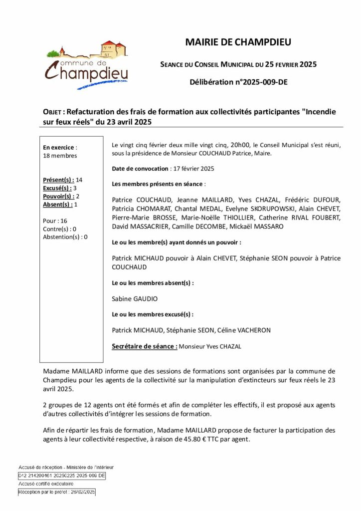 99_DE-DELIB 2025 009 CM du 25 02 2025 Refacturation frais de formation Incendie sur feux réels SPublié 22 octobre 2025 dans Comptes Rendus de Conseils (Champdieu & LFA). ← Précédent https://www.champdieu.eu/wp-content/uploads/2016/10/COMPTE-RENDU.png https://www.champdieu.eu/wp-content/uploads/2025/10/image001-2.jpg https://www.champdieu.eu/wp-content/uploads/2025/10/image001-3.jpg