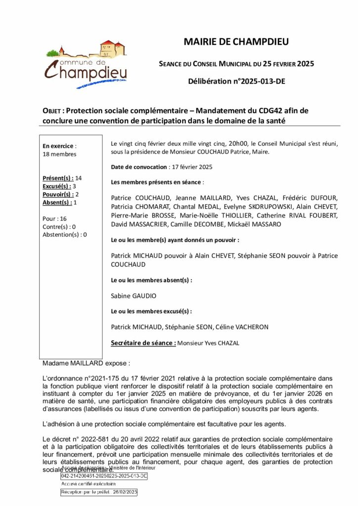 99_DE-DELIB 2025 013 CM du 25 02 2025 Protection sociale complémentaire mandatement au CDG42 SPublié 22 octobre 2025 dans Comptes Rendus de Conseils (Champdieu & LFA). ← Précédent https://www.champdieu.eu/wp-content/uploads/2016/10/COMPTE-RENDU.png https://www.champdieu.eu/wp-content/uploads/2025/10/expo-de-classes-d-ecoles--1024x768.jpg https://www.champdieu.eu/wp-content/uploads/2025/10/image001-2.jpg https://www.champdieu.eu/wp-content/uploads/2025/10/image001-3.jpg
