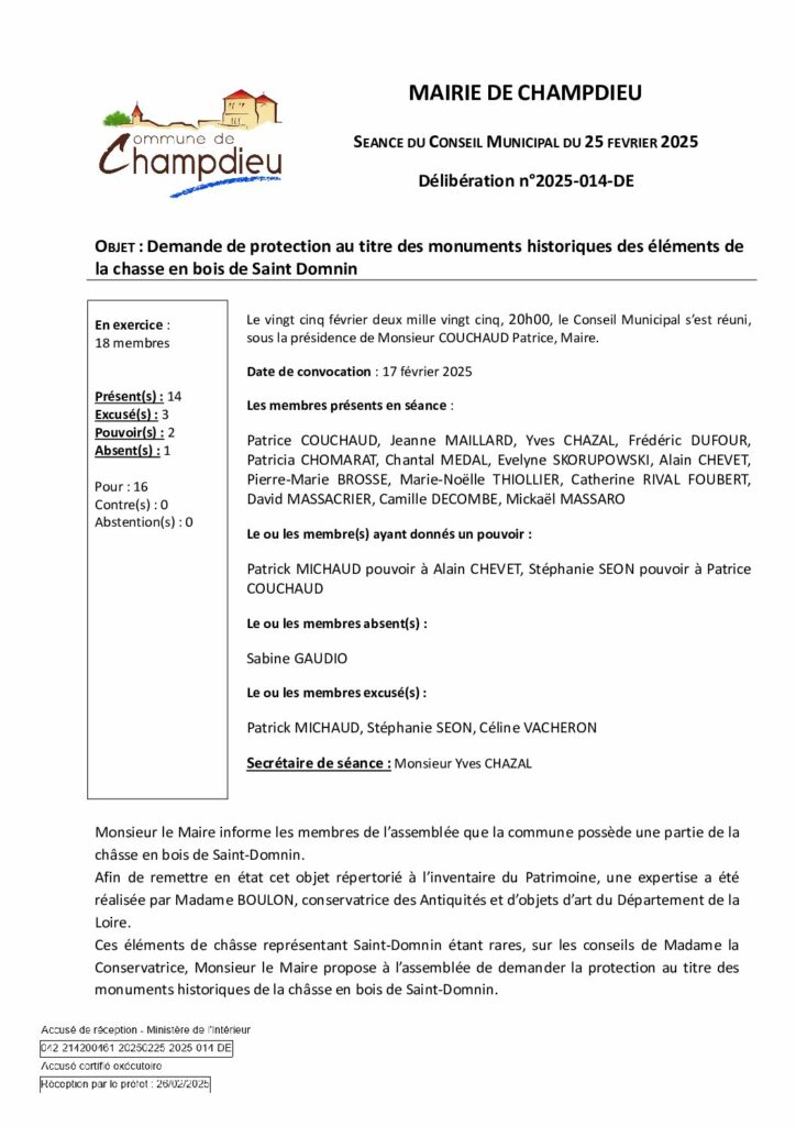 99_DE-DELIB 2025 014 CM du 25 02 2025 Demande de protection au titre des MH de la châsse en bois de St Domnin SPublié 22 octobre 2025 dans Comptes Rendus de Conseils (Champdieu & LFA). ← Précédent https://www.champdieu.eu/wp-content/uploads/2016/10/COMPTE-RENDU.png https://www.champdieu.eu/wp-content/uploads/2025/10/image001-2.jpg https://www.champdieu.eu/wp-content/uploads/2025/10/image001-3.jpg