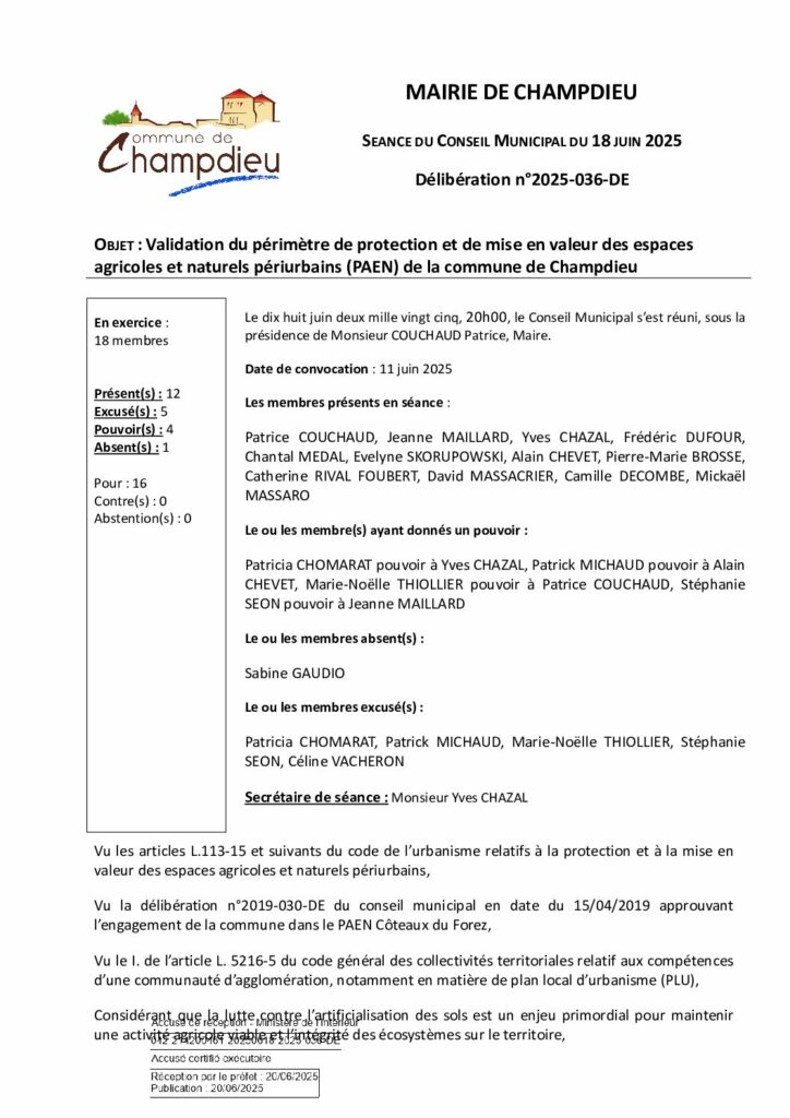 99_DE-DELIB 2025 036 CM du 18 06 2025 Validation du périmètre de protection et de mise en valeur du PAEN de la commune SPublié 22 octobre 2025 dans Comptes Rendus de Conseils (Champdieu & LFA). ← Précédent https://www.champdieu.eu/wp-content/uploads/2016/10/COMPTE-RENDU.png https://www.champdieu.eu/wp-content/uploads/2025/10/expo-de-classes-d-ecoles--1024x768.jpg https://www.champdieu.eu/wp-content/uploads/2025/10/image001-2.jpg https://www.champdieu.eu/wp-content/uploads/2025/10/image001-3.jpg