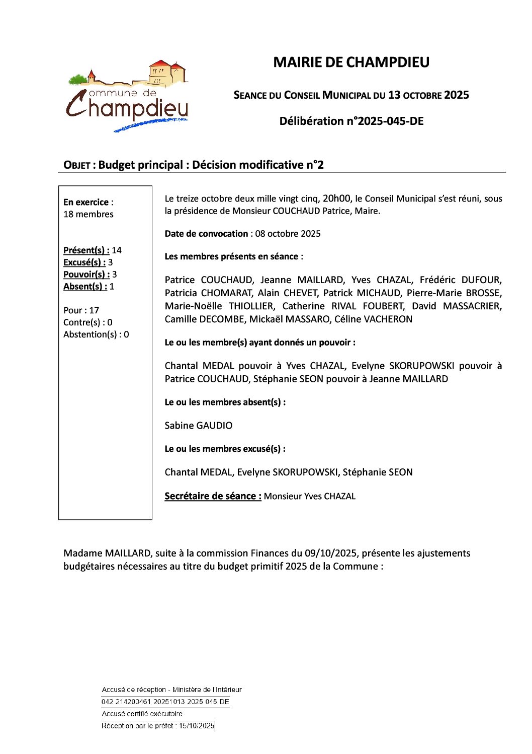 99_DE-DELIB 2025 045 CM du 13 10 2025 Budget principal DM2 SS Publiée le 20 10 2025Publié 22 octobre 2025 dans Comptes Rendus de Conseils (Champdieu & LFA). ← Précédent https://www.champdieu.eu/wp-content/uploads/2016/10/COMPTE-RENDU.png https://www.champdieu.eu/wp-content/uploads/2025/10/expo-de-classes-d-ecoles--1024x768.jpg https://www.champdieu.eu/wp-content/uploads/2025/10/image001-2.jpg https://www.champdieu.eu/wp-content/uploads/2025/10/image001-3.jpg