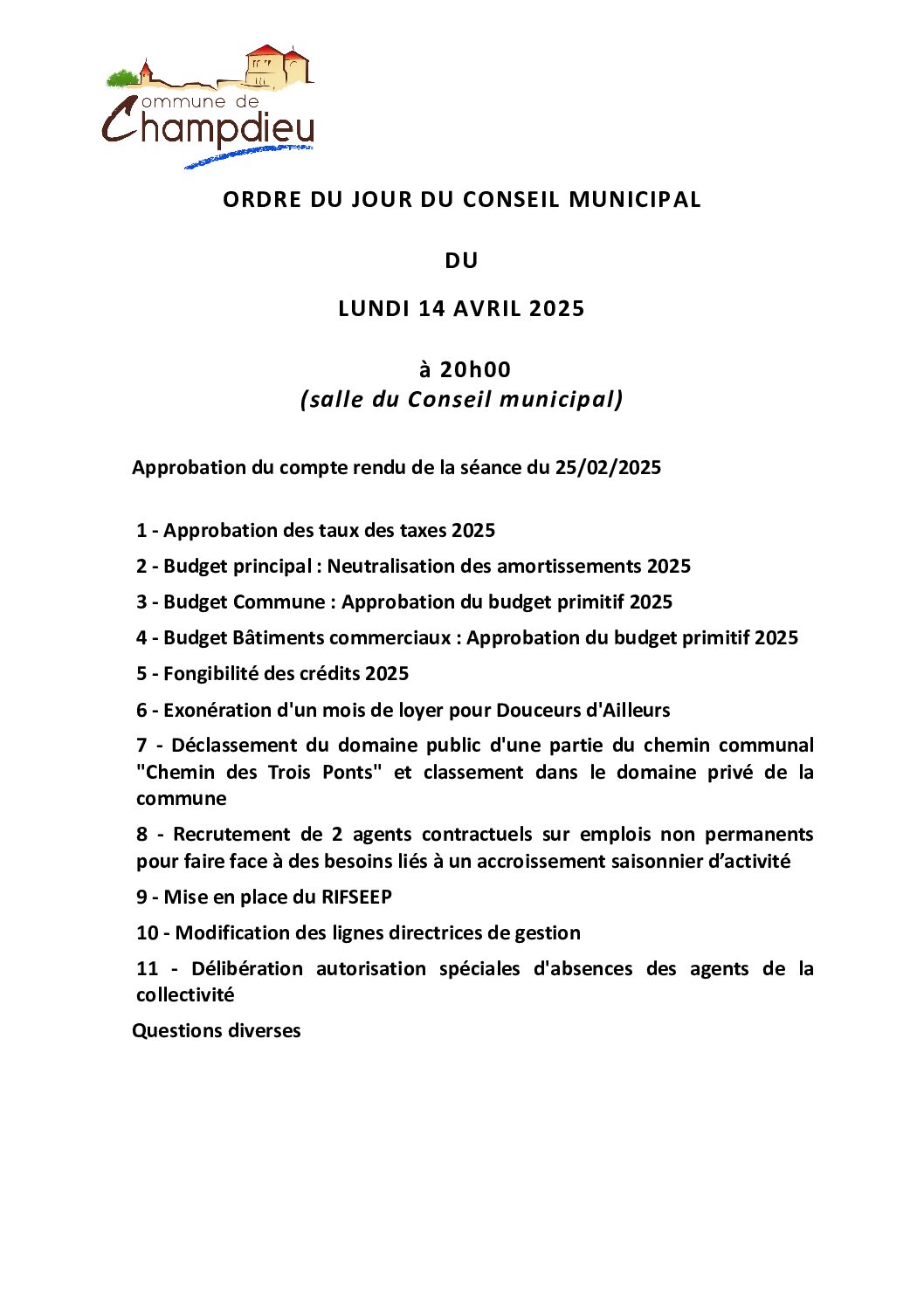 CM du 14 04 2025 ODJ affichagePublié 22 octobre 2025 dans Comptes Rendus de Conseils (Champdieu & LFA). ← Précédent https://www.champdieu.eu/wp-content/uploads/2016/10/COMPTE-RENDU.png https://www.champdieu.eu/wp-content/uploads/2025/10/expo-de-classes-d-ecoles--1024x768.jpg https://www.champdieu.eu/wp-content/uploads/2025/10/image001-2.jpg https://www.champdieu.eu/wp-content/uploads/2025/10/image001-3.jpg
