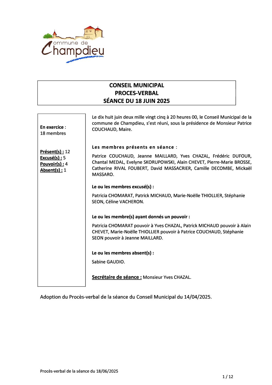 PV CM du 18 06 2025 SS Publié le 20 10 2025Publié 22 octobre 2025 dans Comptes Rendus de Conseils (Champdieu & LFA). ← Précédent https://www.champdieu.eu/wp-content/uploads/2016/10/COMPTE-RENDU.png https://www.champdieu.eu/wp-content/uploads/2025/10/image001-2.jpg https://www.champdieu.eu/wp-content/uploads/2025/10/image001-3.jpg